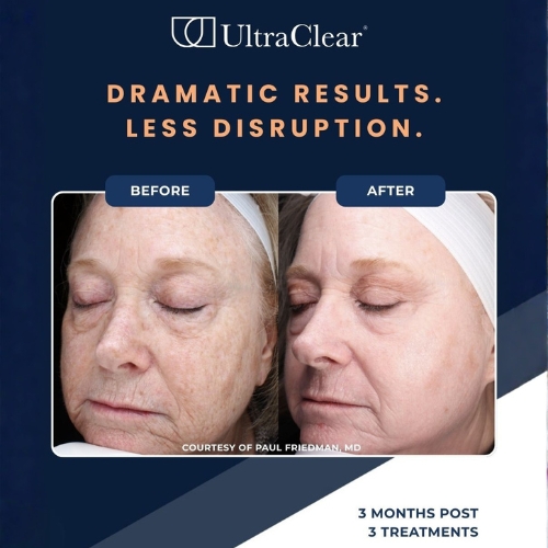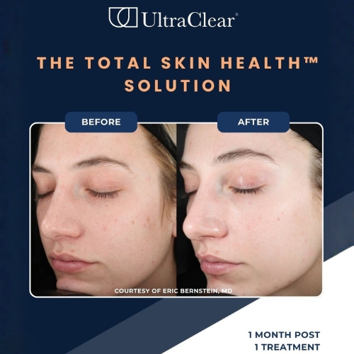The great advantage of UltraClear is that it targets multiples concerns such as skin laxity, wrinkles, pigmentation, crepey skin, acne scars, uneven texture, uneven tone. It is a highly effective treatment used alone.